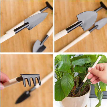 [DURABLE & HIGH QUALITY MATERIAL]: Mini Gardening Tool Set made of wood, iron and PP materials, can be reused multiple times, put tools together to take care of your plants more easily.
