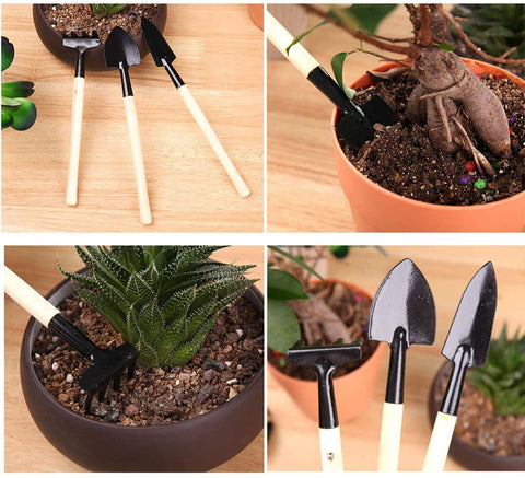 [SET INCLUDING]: 3 Mini Gardening Tool Set: 1 x Round Shovel,1 x Rake ,1 x Sharp Shovel. Excellent tools for the care of mini plants or bonsai.